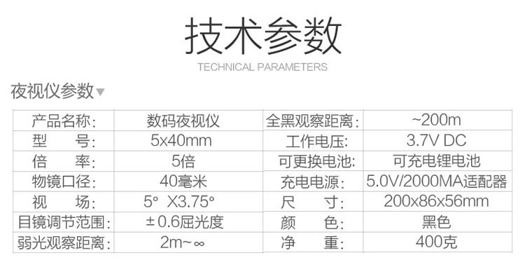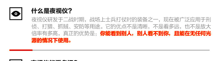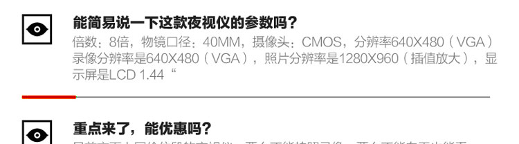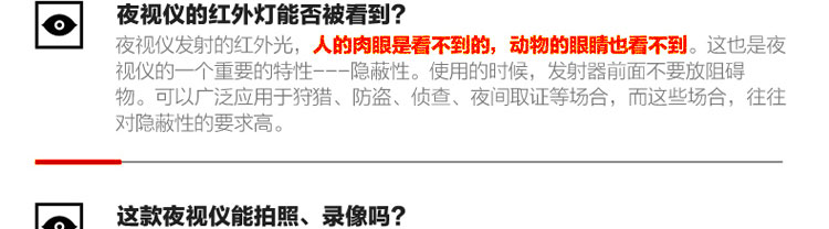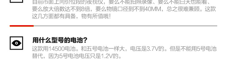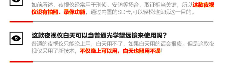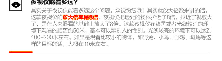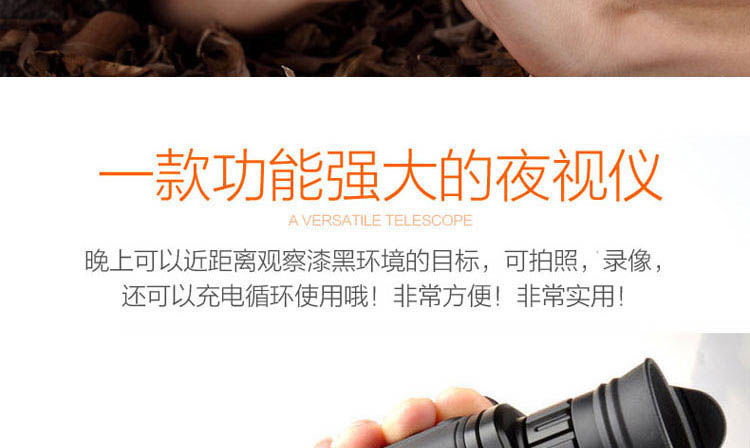 客户评价 浙江金华 黄先生:我之前买过很多个了,这个是朋友推荐的,喜欢野外生存的友友们,推荐购买,质量很好很好,很高清,比在中山路买的便宜多了,这个性价比很高!回复:感谢您的支持。江苏淮安 姚先生商品与商家介绍的完全一样;1000多元的价格物超所值,卖家服务非常非常的好;刚开始不太会用,商家不厌其烦的几次为我讲解才让我能正常使用,服务非常好。物流也很给力,满分十分。回复:我们就是为了给你更好的生活享受:)山西 李先生宝贝不错。晚上试下,在全黑的时候可以看的很清晰,晚上外面也能看有一点灯的街道能清晰看到哪路公交车。升级包的望远镜也很满意,比以前3000多买的看的还远,值!回复:您的满意是我们目标湖南邵阳 周先生发货速度快,包装仔细,质量不错,与描述相符,而且服务态度非常好,晚上可以照相啦!像素还算不错,价格也实惠!是个好商家,有新品还来光顾。回复:谢谢您的惠顾。福建莆田 吕先生今天收到货了,一打开很满意,物流很快,服务态度也好。朋友看见了也很喜欢,让我告诉他在哪买的。很好!值得购买回复:本产品面向市场就深受广大顾客的喜爱,拥有良好的口碑。湖南 谢先生宝贝真的很好哦,拿到手就试用了一下,我们这边今天刚好下雨天,试了一下像素,真的很清晰呢,值了!回复:谢谢您的支持。广东东莞 王先生特意用了来评价,是正品,拿在手上手感很好,买之前还专门到附近的商场去了解了下其他牌子,这款性价比还蛮高的,商家包装的挺结实,收到货没一点破损,晚上在小区里实验了一下,效果很清晰,可以满足我的需求。回复:谢谢您的支持。广东惠州 林先生很赞,朋友很喜欢,很感动,要慢慢研究,质量很好,物真价实,比实体店便宜很多。值得信赖的卖家。好评全5分。。。回复:谢谢您的支持。江西九江 李先生朋友收了特别开心,特意试用了之后,让我好好评价。说机器的做工精良,操作简便易上手/虽然是入门级产品,但在微光环境下表现还不错/完全黑暗环境没有试过,因为在城市里找不到全黑的地方/视场较小,调焦和开红外灯的效果没什么感觉/看近处不如看中远距离清晰。没用过高档夜视产品,不知道夜视的最高境界是怎样的。 顺便说一下店家和顺丰的服务超级棒,赞!回复:谢谢您的支持,我们会继续努力。江苏丹阳 叶先生新手买了以后强力推荐啊,太棒了,爱不释手啊,跟店家描述一样,很清晰呢 新手买问题多,店家回答的很到位啊,发货快,赞一个回复:谢谢您的支持。湖南衡阳 贺先生送给老公的,他打开研究了半天,特别喜欢,充好电晚上特地试了一下,很清晰,也很方便,还约好了一定带上去露营回复:谢谢您的支持。广东江门 刘先生夜视功能不错!在漆黑的晚上能看清50米外大树上的鸟窝,挺好,不要说话,看图全黑夜视:38米的树枝,135米的窗户.墙面,119米的信号塔,26米的卫星天线,距离都是用激光测距仪测的,误差1米左右回复:谢谢您的支持。福建泉州 江先生不错,全黑的环境都能看到,买了不后悔,总会有用的。买一个玩玩,晚上可以随便看,拍下视频可以连接电脑看,效果会更好。回复:谢谢您的支持。四川成都 谢先生宝贝质量很好,包装也精致,看东西特别清晰,而且还不费眼,效果很好,比想象中要好很多,很满意回复:谢谢您的支持。福建三明 伍先生好事多磨,先发了一台效果不够好,店主又给我从新发了一台,这次效果非常的满意,伸手不见五指的情况下连十米开外的书本字都看得清楚,非常满意的购物。回复:谢谢您的支持。江西上高 谢先生可拍照夜视望远镜很好,特别是弱光和全黑条件下凸显其强大的功能,值得购买。回复:谢谢您的支持。四川内江 于先生东西收到了,晚上试用了一下,较远的地方真的能看得很清楚,操作一学就会,比起以前的好太多了! 卖家服务好,发货及时,物流给力!回复:谢谢您的支持。浙江台州 高先生质量不错,录像效果不错,画面清晰,性价比高,是正品,与卖家描述的完全一致,很喜欢,非常满意,真的完全超出期望值江苏沐阳 施先生非常值得,和我在香港买的差一点,我那部是港币6K多,我的天,这个性价比高,很好用。后面又介绍朋友买了一个回复:谢谢您的支持。